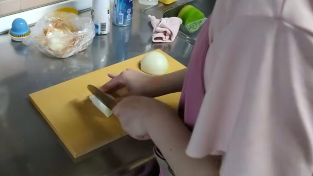 玉ねぎの残りはスライスしてサラダに入れます。