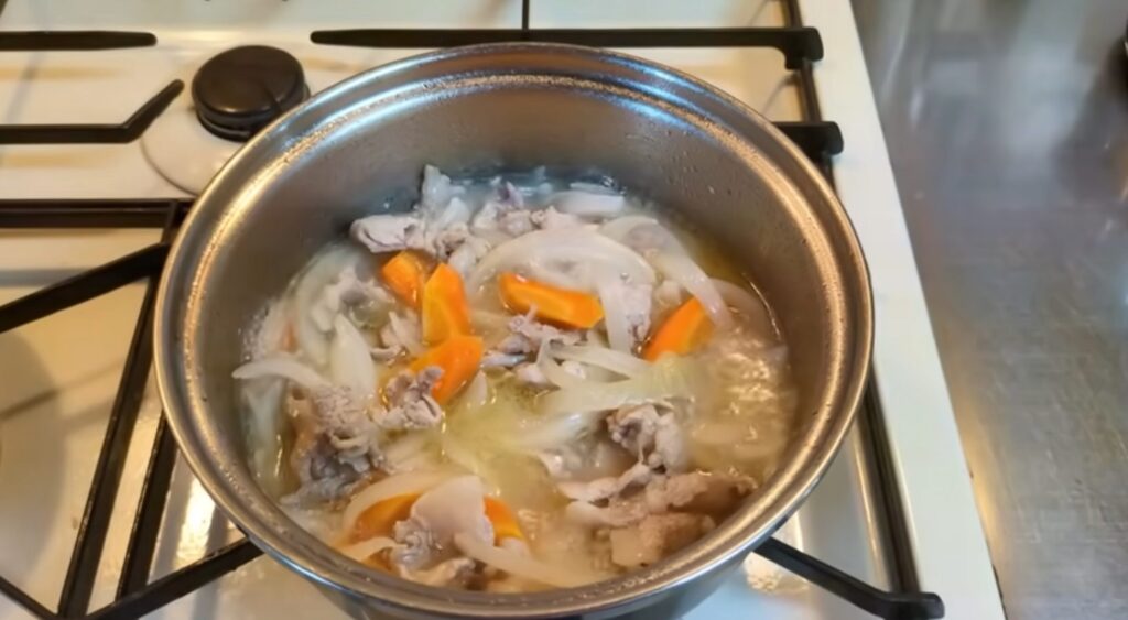 具材は人参と玉ねぎと豚肉です。