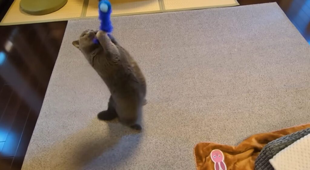 玉ねぎが煮えるまでの間、グレ子と遊びます。