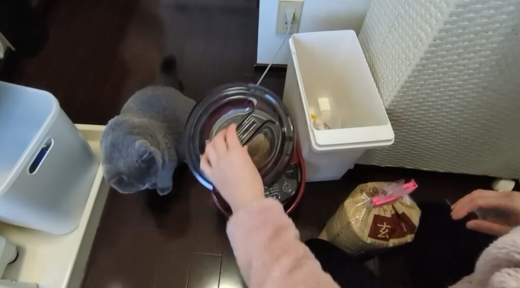 精米したてのお米は香りが良く、グレ子も興味津々で近づいてきます。