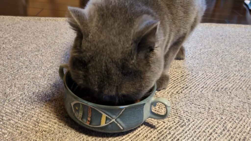 今日はいつものカリカリのごはんと、特別に少しリッチなウェット状のごはんを混ぜようと思います。